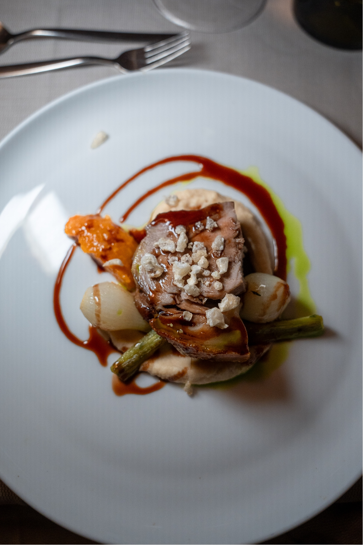 Abends servieren wir ein 4‑Gang‑Abendmenü – ausschließlich tischweise. Bei Unverträglichkeiten/Allergien hilft das Serviceteam gerne weiter.